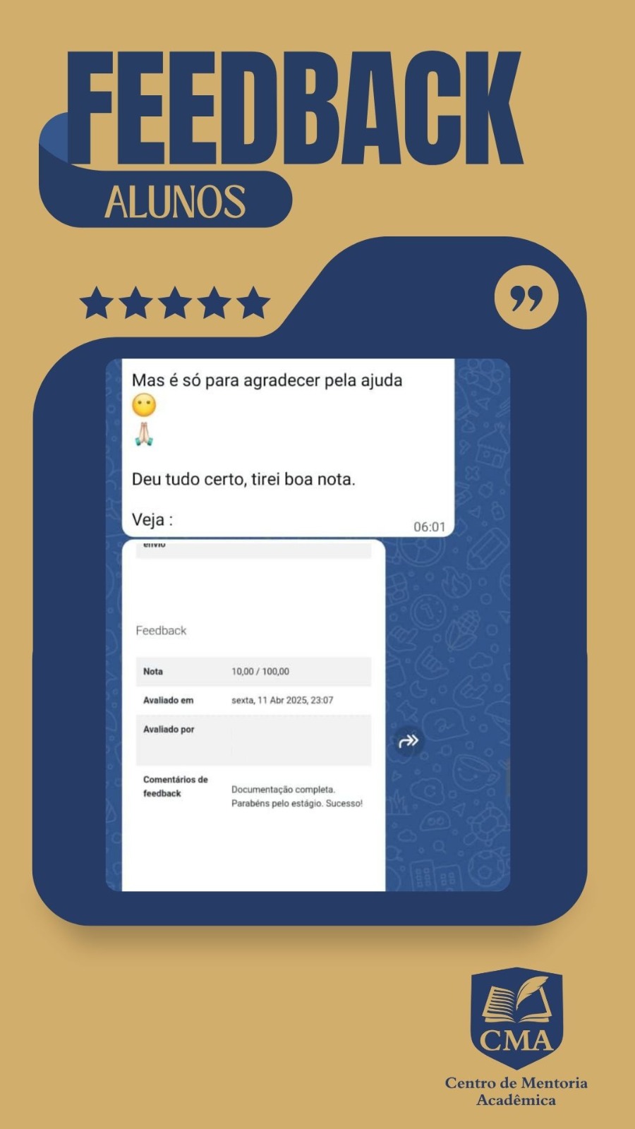 Oferecemos orientação especializada para estudantes na elaboração de relatórios de estágio, com foco na organização das informações, estrutura adequada do conteúdo, correção gramatical e formatação conforme as normas da instituição. Em casos específicos, orientamos o aluno sobre alternativas administrativas em situações de ausência de supervisão formal. Não redigimos o o relatório em nome do aluno — nossa atuação é focada em consultoria e acompanhamento técnico, promovendo autonomia, clareza e conformidade acadêmica ao longo do processo.